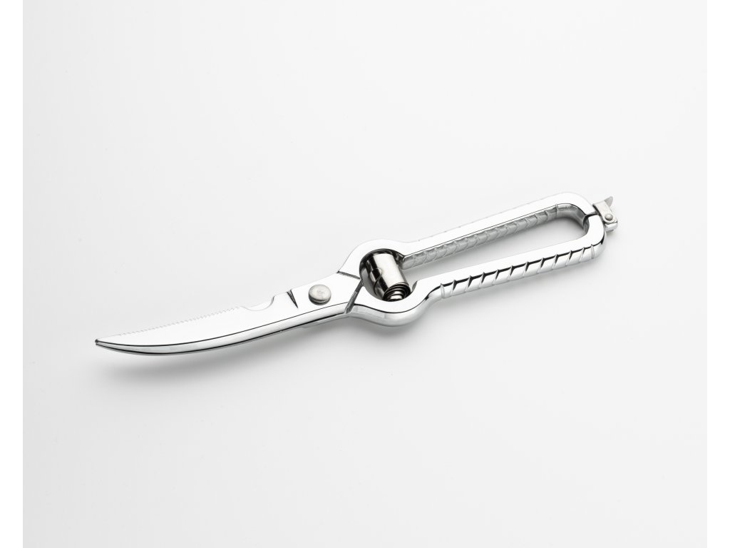 Robustné nožnice z nehrdzavejúcej ocele na porciovanie kurčaťa, kačice a morky. Ostré čepele, zúbkované vedenie proti šmýkaniu, bezpečnostný zámok a ergonomická rukoväť pre pohodlnú a presnú prácu.